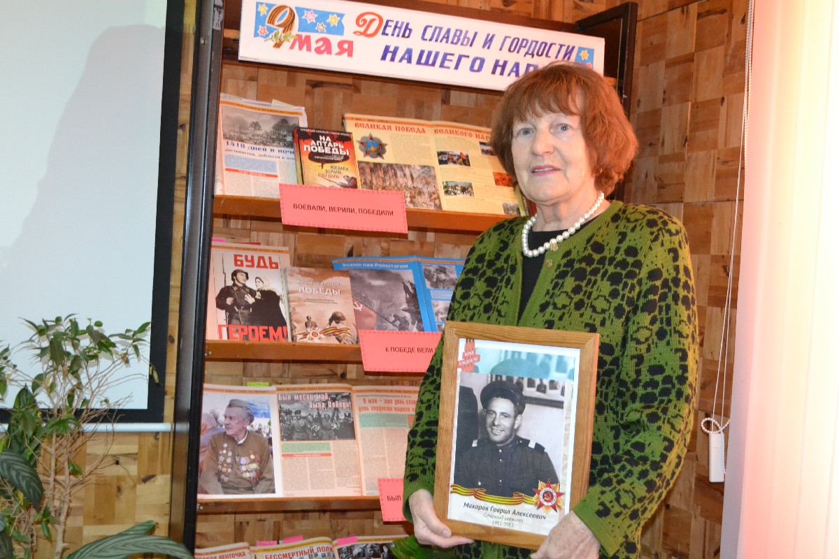 Затем в беседе, ветераны вспоминали своих родных, прошедших через горнило той страшной войны. Некоторые из гостей принесли портреты своих родных. В завершении участники встречи сфотографировались у «Окон Победы», которые оформили сотрудники библиотеки.