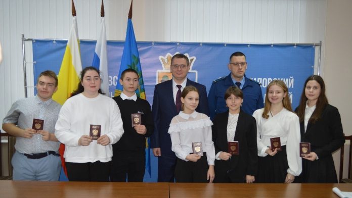 12 декабря в малом зале районной администрации, семи школьникам из Старожиловского района вручили паспорта. На торжестве присутствовали глава администрации Вадим Рыжков, прокурор Евгений Денисов, председатель районного совета ветеранов Вера Архипова. Они поздравили ребят с получением паспорта.
