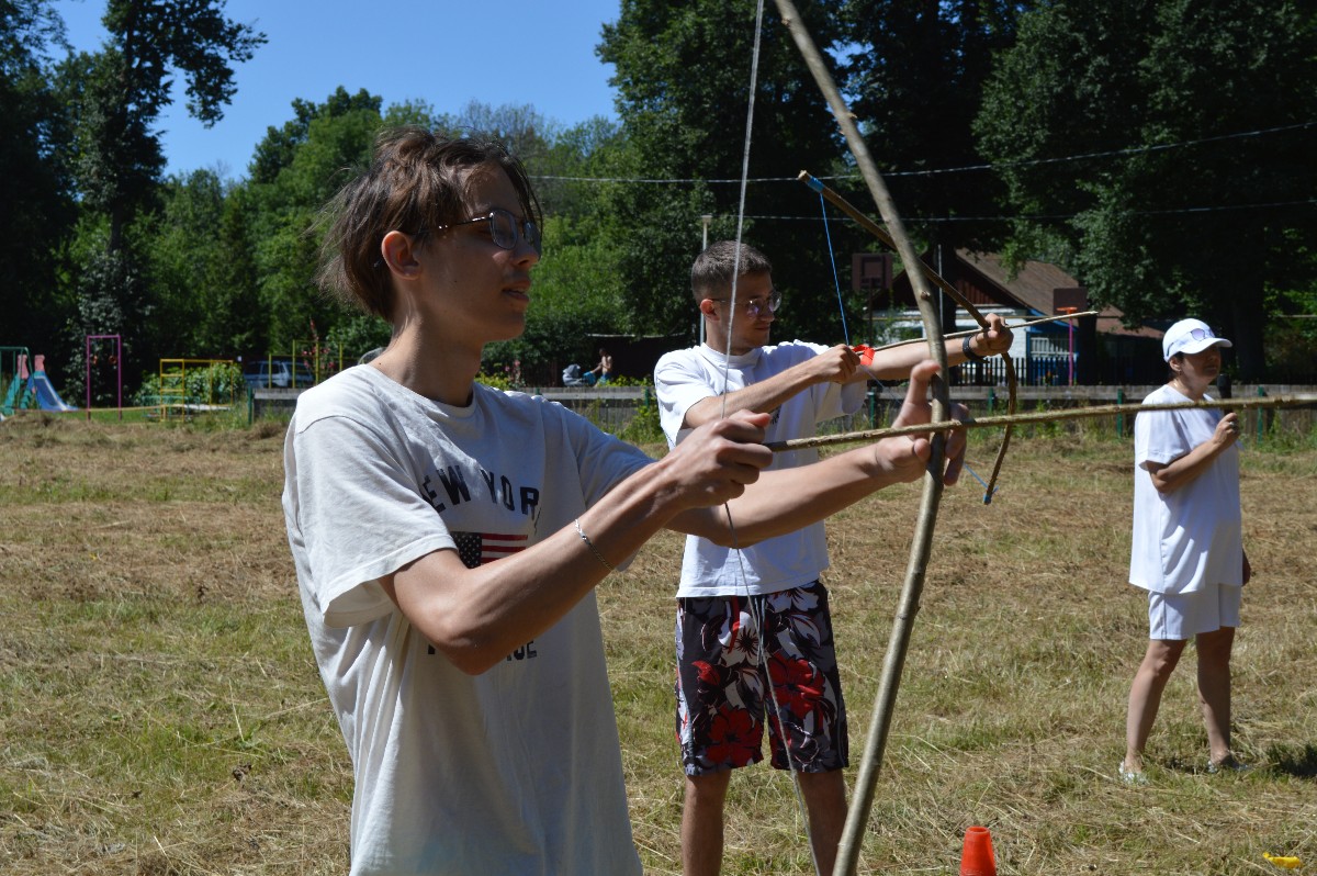 Студенты Сергей Бодров, Михаил Медведев и девятиклассник местной школы Антон Завацкий проверяли спортивные навыки участников квест-игры на станции «Богатырская».