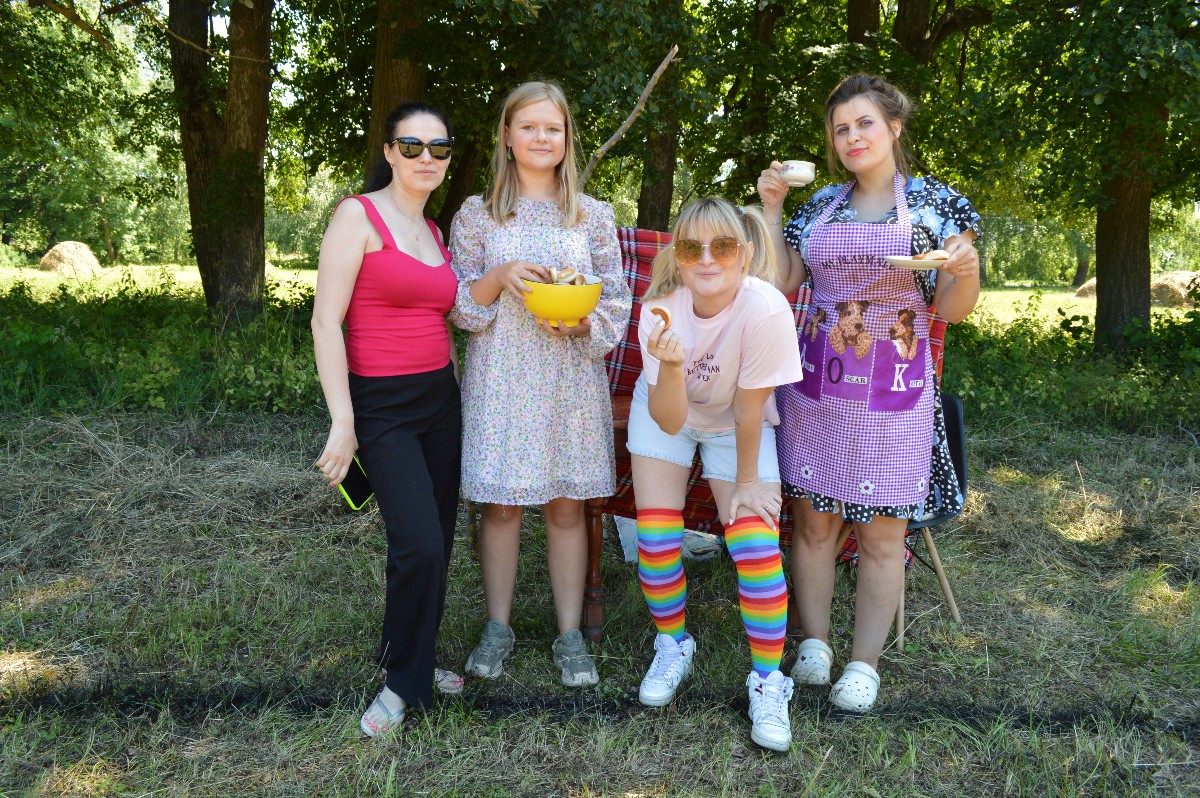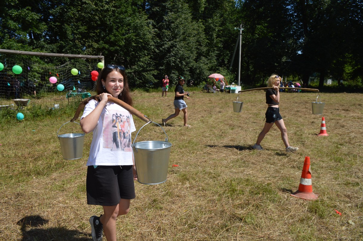 Взрослые участвовали в конкурсах по заплетанию кос, стрельбе из лука по воздушным шарам и даже собирали с закрытыми глазами мясорубку.