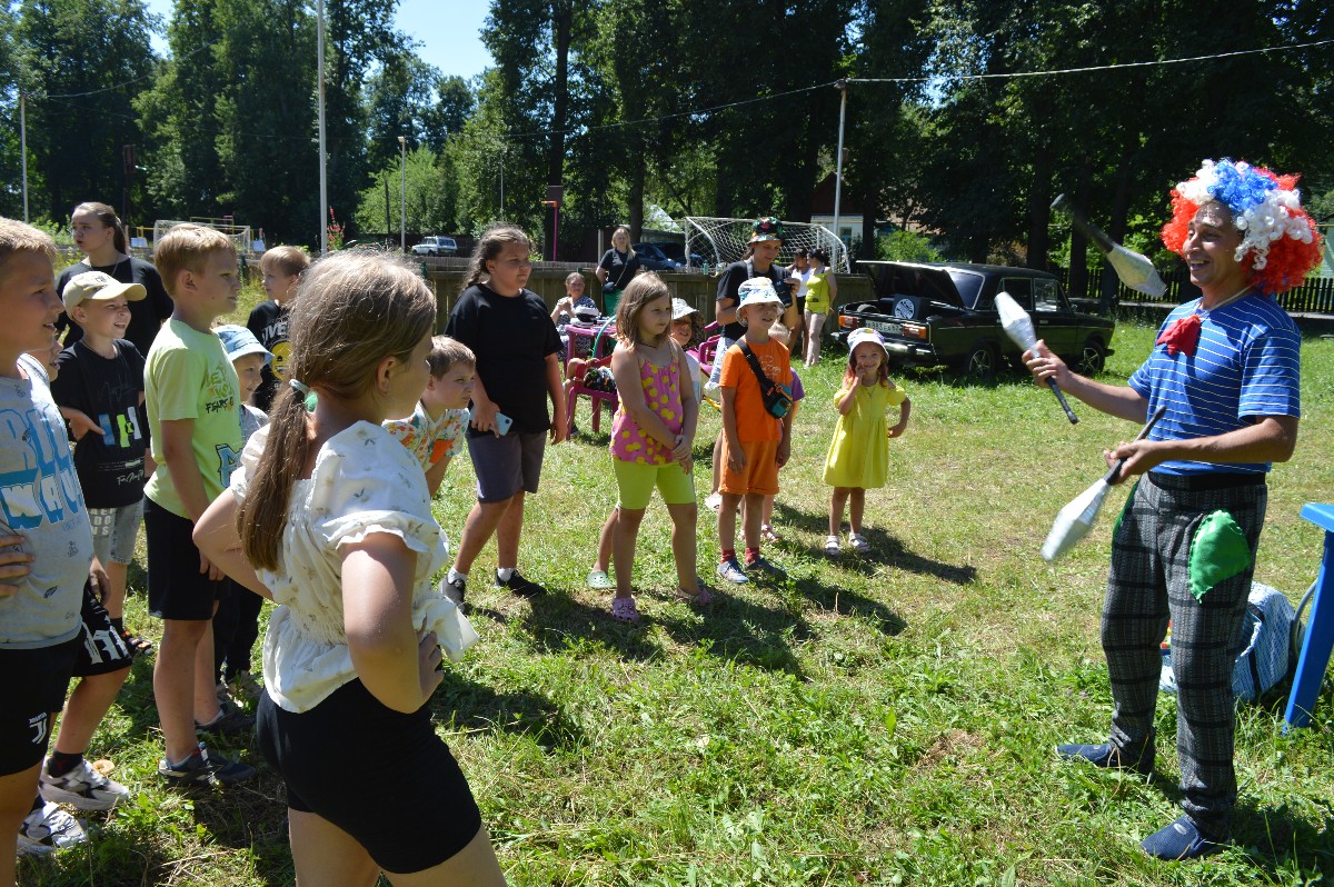 На празднике для детей выступал клоун Тепа. И взрослые, и дети перетягивали канат и ели мороженое.