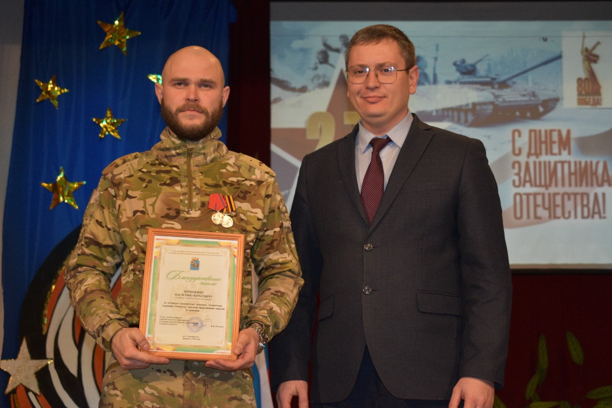 За патриотизм, служение Отечеству, высокие нравственные идеалы и гуманизм он наградил благодарственными письмами участников СВО Василия Прошкина и Петра Макарова и волонтеров.