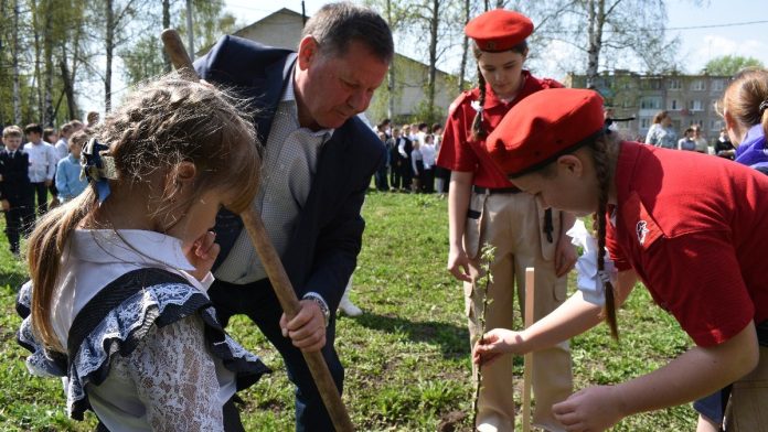 23 апреля в Хрущевской школе провели акцию «Сад памяти». Перед ее началом состоялась линейка, на которую пригласили почетных гостей – главу района Ивана Шерняева, и.о. главы администрации района Александра Соушева, местного предпринимателя Гасана Айюбова и других.