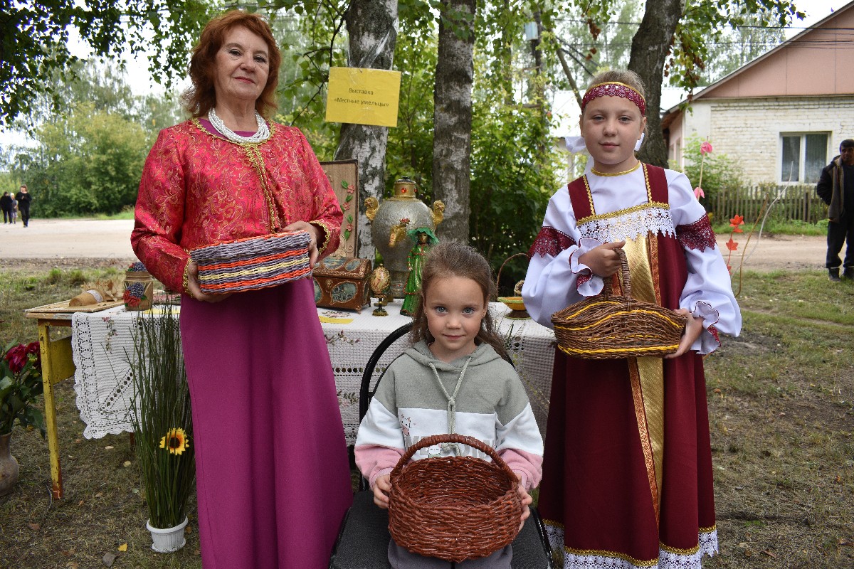 «В поселок наша семья приехала в 1990 году из Узбекистана. За прошедшие годы привыкли ко всему, обжились, полюбили здешние места. У меня четверо детей, девять внуков и один правнук. Сегодня со мной на празднике две внучки – 10-летняя Надежда и 5-летняя Полина. Я работала в Доме культуры, а теперь в детском саду. Не так давно увлеклась плетением из бумажной лозы. Технику осваивала с помощью интернета. Дело это меня увлекло, много вещей сплела. Свои работы дарила друзьям и знакомым. На сегодняшнюю выставку в честь Дня села я принесла несколько работ, а также вкусные яблоки из нашего сада».