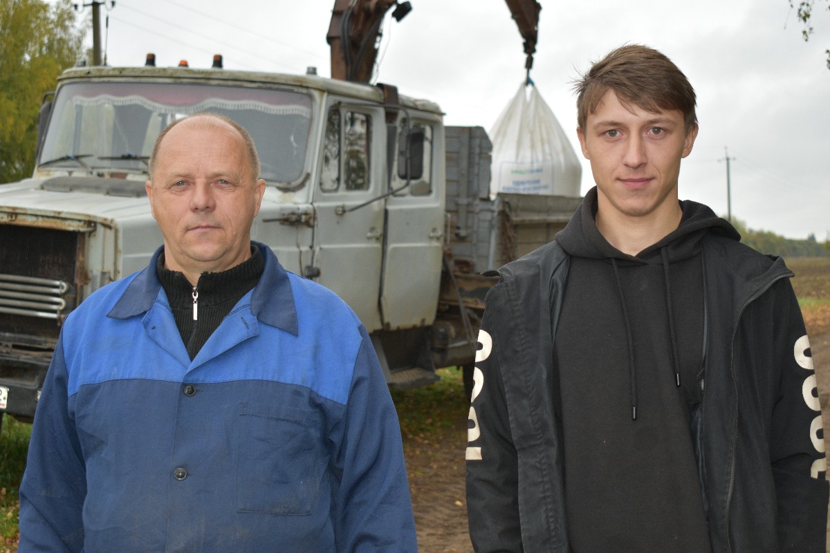 На утро 24 сентября земледельцы ООО «Золотой колос» посеяли более половины площади, запланированной под озимую пшеницу. Сеет на посевном комплексе Amazone механизатор Игорь Перевозкин. Доставляют семена и удобрения в поле водитель Андрей Ларинский и механизатор Владимир Беляев.