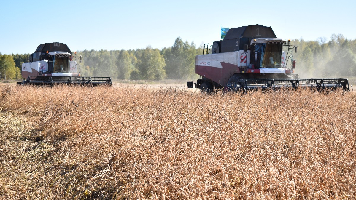 В крупнейшем в районе сельхозпредприятии (площадь пахотных земель составляет 15 тысяч гектаров) к обмолоту сои приступили в начале третьей декады сентября, когда влажность в бобах составила 14,5%.