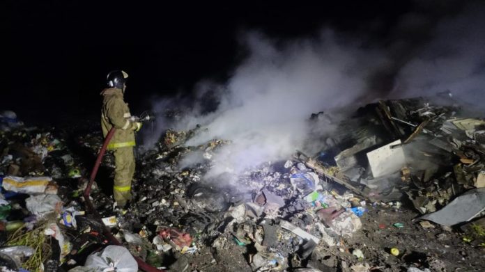 Из-за позднего обнаружения и отсутствия на месте обслуживающего персонала, огонь на полигоне распространился на 70 кв. метров.