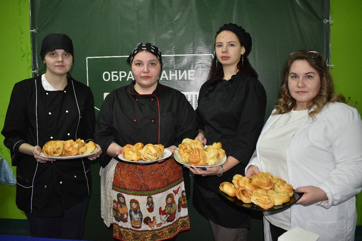 «Более двухсот булочек из дрожжевого сдобного теста испекли будущие повара-кондитеры. Это плюшки московские, косички с корицей и завитушки сдобные».
